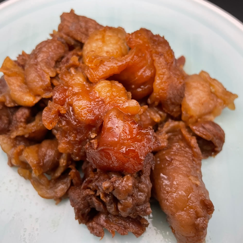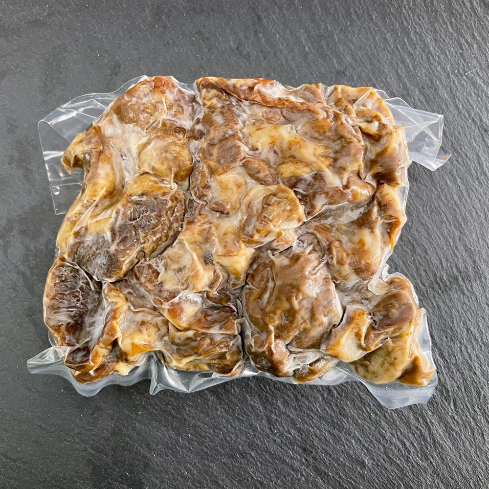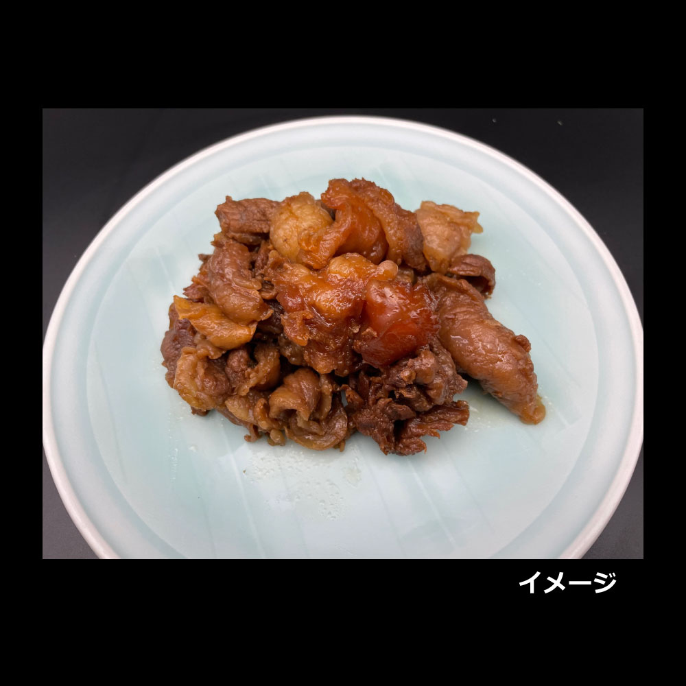 大井肉店特製割下で煮込んだ少し歯ごたえのある甘辛い和牛スジ肉です。